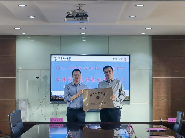 7790cnm必发集团耿中华书记与宜兴市阳羡高级中学、宜兴市第二高级中学分别签订了共建优质生源基地协议,涂宝军部长为两所中学分别颁授“7790必发集团优质生源基地”牌匾。
